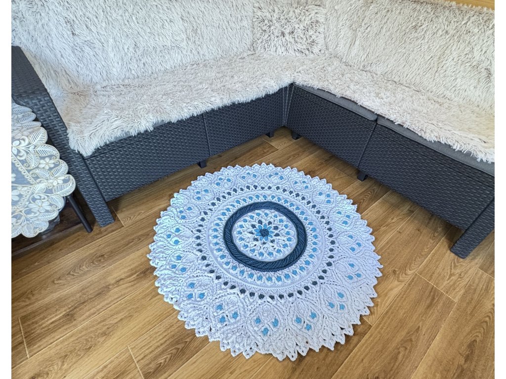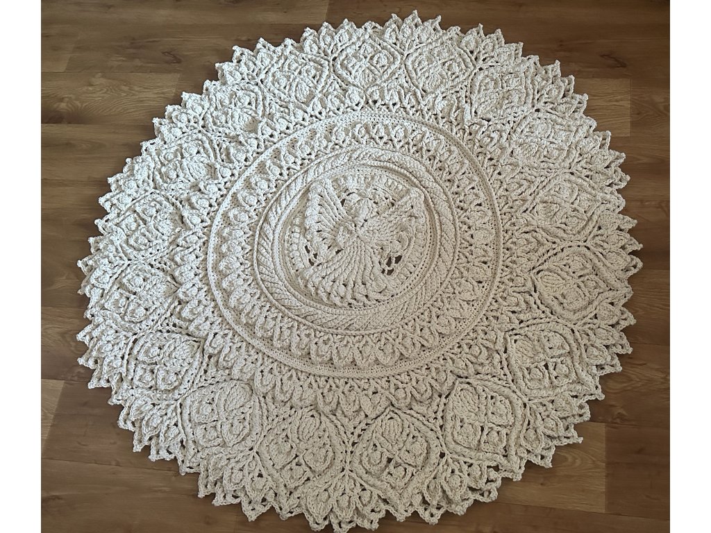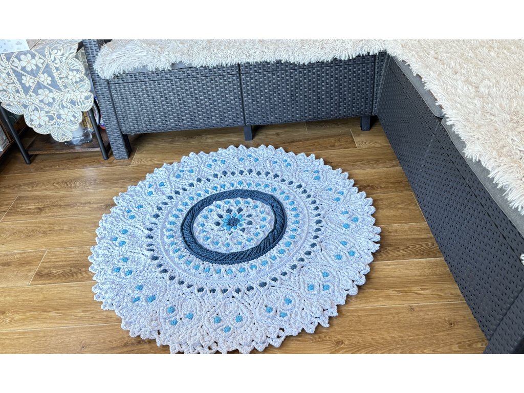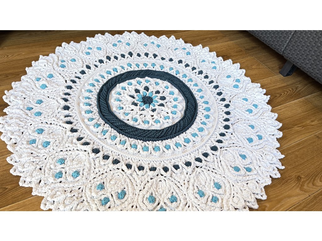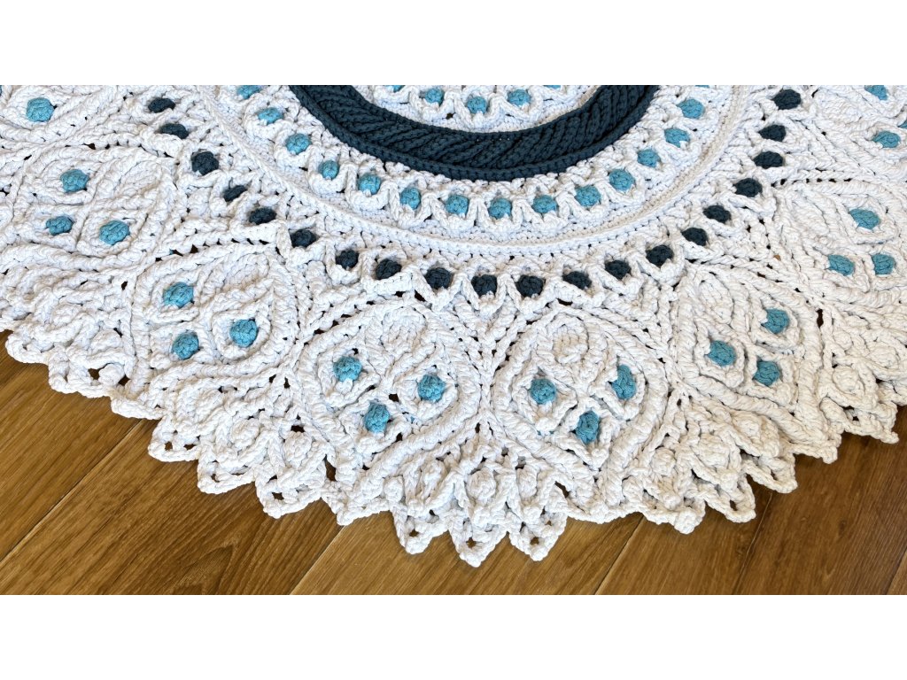 Originálny 3D koberec háčkovaný s láskou z kvalitnej priadze s vysokým podielom bavlny. Vyniká plastickým vzorom, ktorý dodá vášmu interiéru jemnosť, teplo a jedinečný rukopis ručnej tvorby.