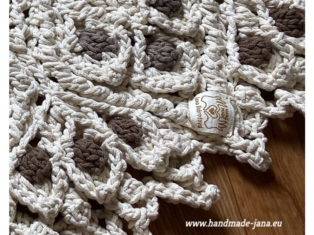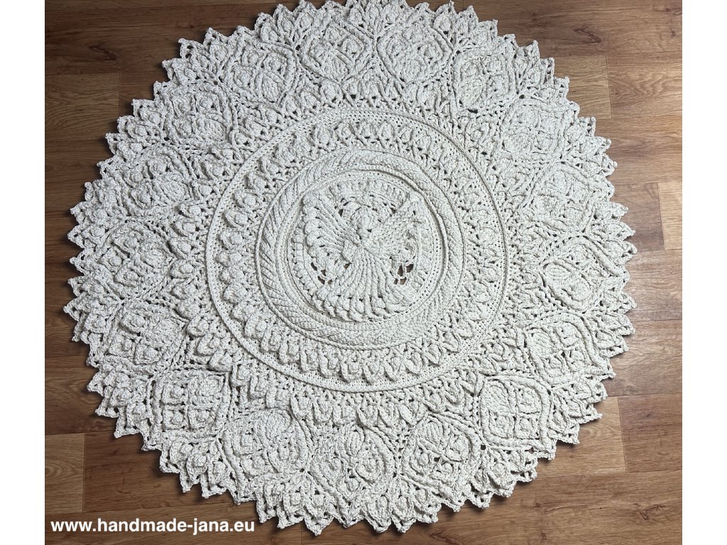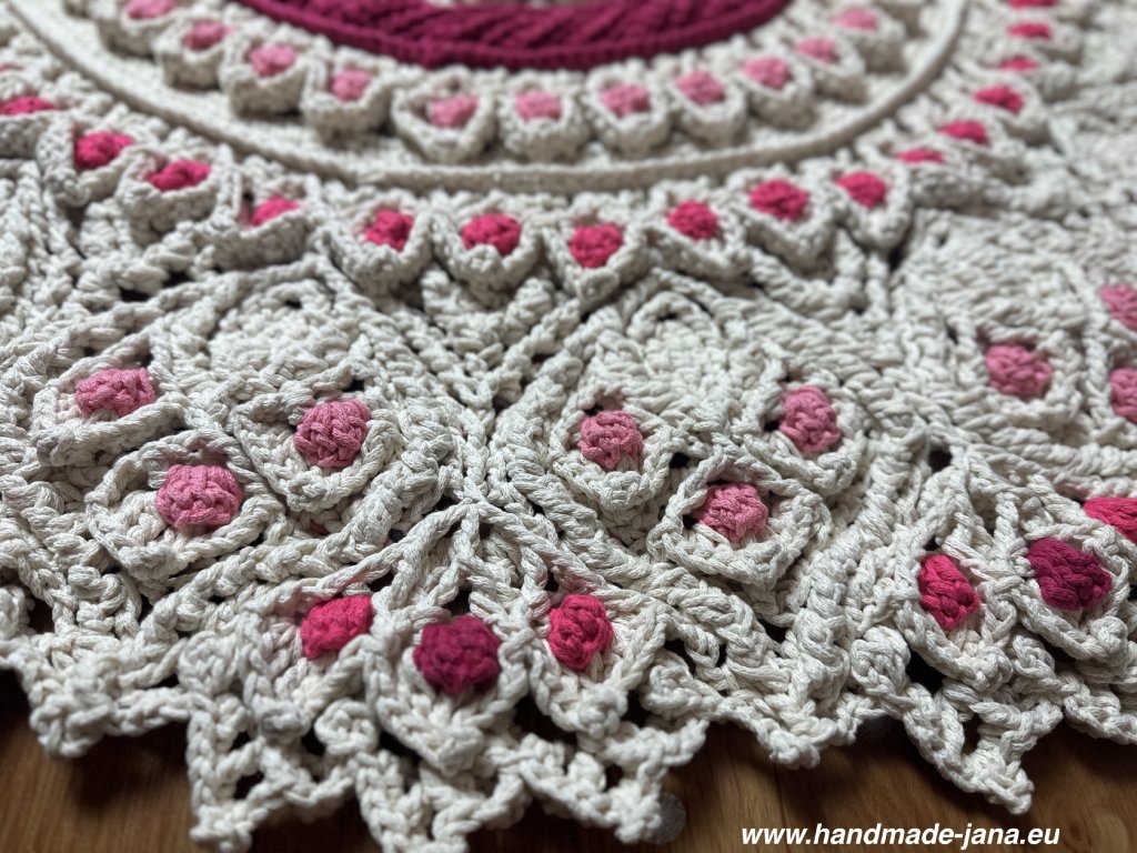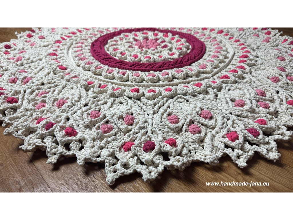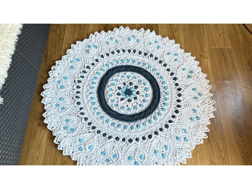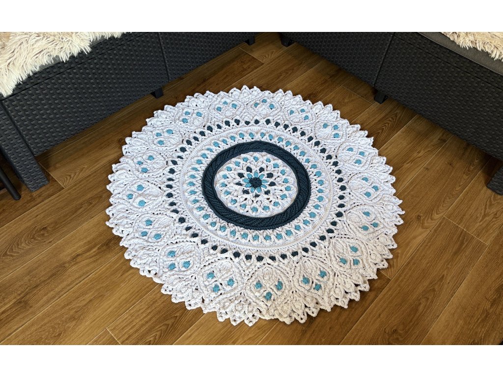 Originálny 3D koberec háčkovaný s láskou z kvalitnej priadze s vysokým podielom bavlny. Vyniká plastickým vzorom, ktorý dodá vášmu interiéru jemnosť, teplo a jedinečný rukopis ručnej tvorby.