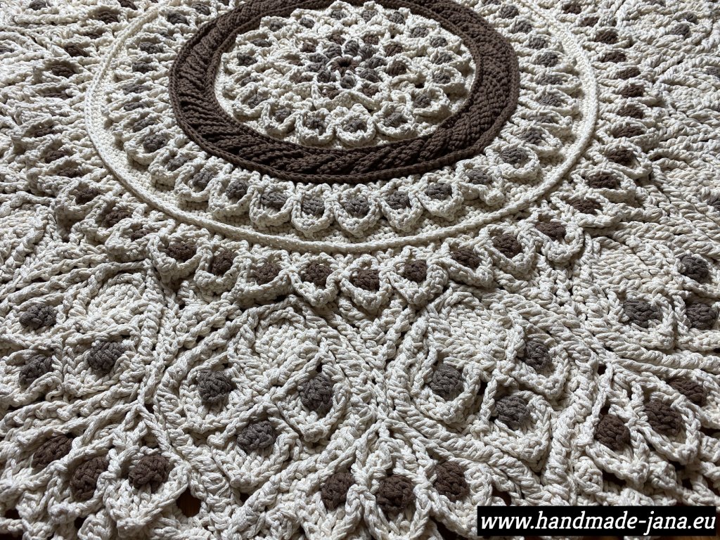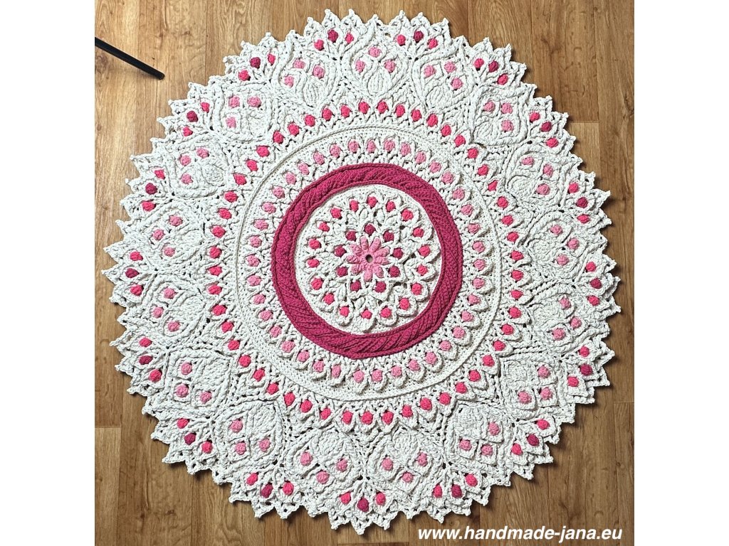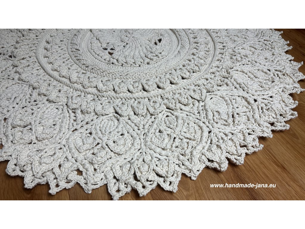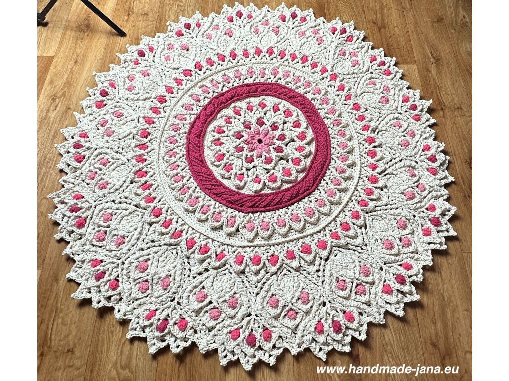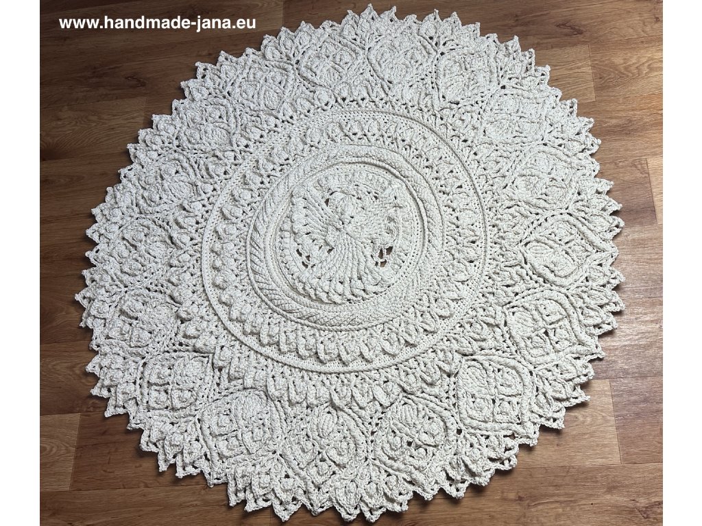 Originálny 3D koberec háčkovaný s láskou z kvalitnej priadze s vysokým podielom bavlny. Vyniká plastickým vzorom, ktorý dodá vášmu interiéru jemnosť, teplo a jedinečný rukopis ručnej tvorby.